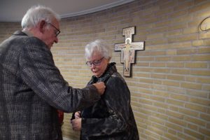 Jan Faber sprak een woord van welkom aan de genodigden en een dankwoord aan Ria met een zilveren KBO-speld, bloemen en een cadeaubon. Een woordje van Pastoor Peter Wellen met penning van de Heilige Drie-eenheid en bijbehorende oorkonde, een woordje van Marloes Venix met een kaars van St. Stephanus en bloemen.