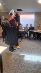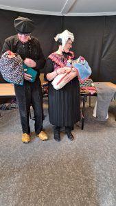 Tenslotte werden twee van onze leden in het “goed” aangekleed. Ze zagen er prachtig uit, compleet met een baby(pop) in wikkeldeken op de arm.